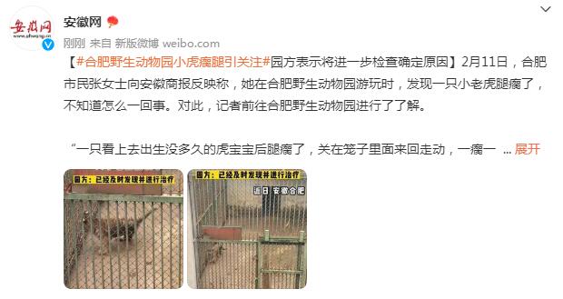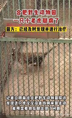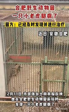 “一只看上去出生没多久的虎宝宝后腿瘸了,关在笼子里面来回走动,一瘸一拐的,不知道是生病了还是受伤了。”张女士告诉记者,当天她带着娃去合肥野生动物园游玩,看到了这一情况,她希望小老虎的情况要引起园方重视。