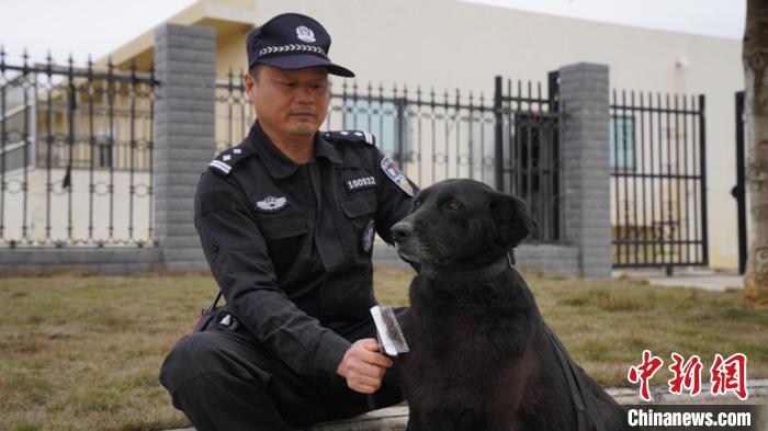 训导员刘荣光正在照顾退役功勋犬“金刚”。 姚鹏鹏 摄