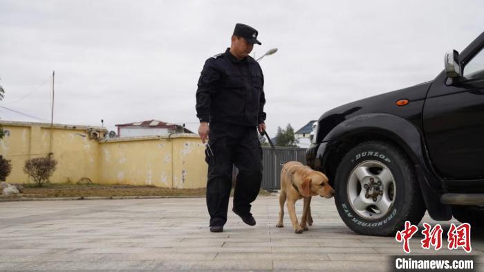 训导员正在进行警犬搜索违禁物品训练。 胡玄德 摄