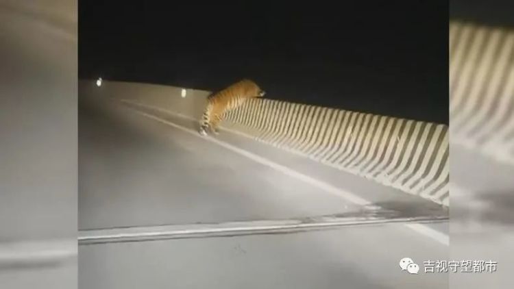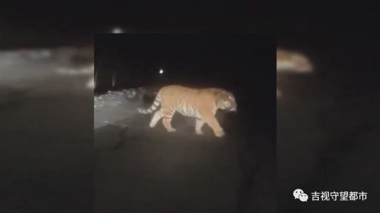2月14日晚上,吉林省珲春的一名男子在驾车途中,偶遇了一只老虎。
