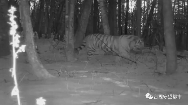 2022年12月13日晚上7点多,一男子与朋友驾车经过吉林汪清县金仓林场附近,也遇到了一只野生东北虎正在路边悠闲地散步,人虎对视数秒后,老虎转身离去。