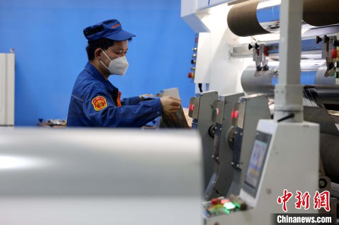 工人在包装材料公司的智能化包装材料生产线上作业。 解琛 摄