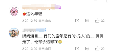 不少网友感慨,《小龙人》中有一集是去了未来,8岁的贝贝变成了88岁的贝贝,没想到,现实中“贝贝”的生命停留在了38岁,实在令人叹息不已。
