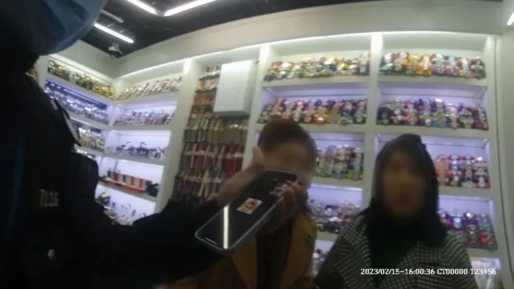 值班民警胡华森立即启动紧急劝阻机制,陪同王先生查看视频监控,找寻王女士踪迹,同时安排警力到商铺守候。