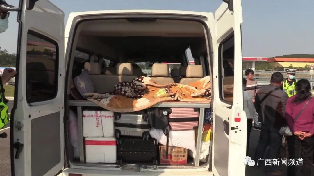 当民警打开车门检查时,发现车内人满为患,异常拥挤,有一名乘客还直接躺在了车尾内。