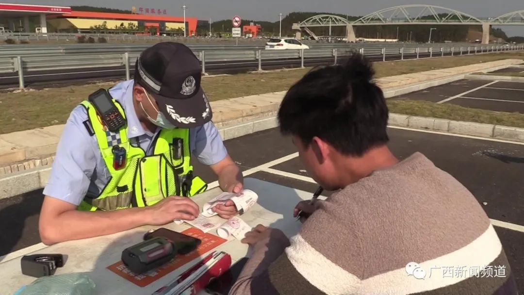 近日,在高速公路那丽服务区,一辆桂A牌照的车辆驶入服务区,司机看到有交警在例行检查,竟然加大油门冲卡。