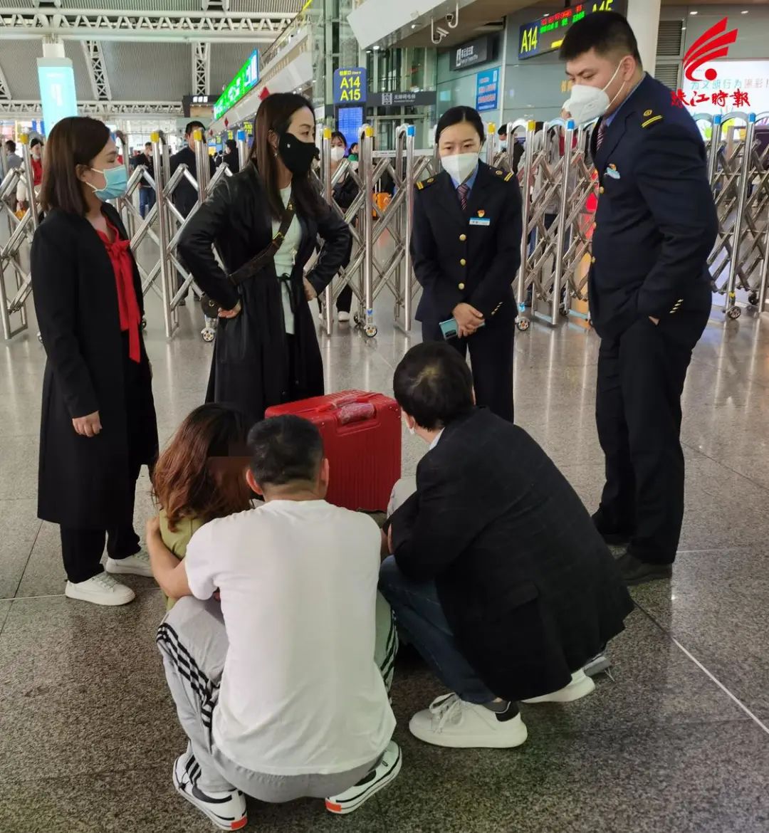 随后,医务人员便嘱咐乘务工作人员拿糖水给她喝,并把孕妇扶上轮椅,送去休息室休息。此时,距离张静三人乘坐的车次发车时间仅剩40多分钟。