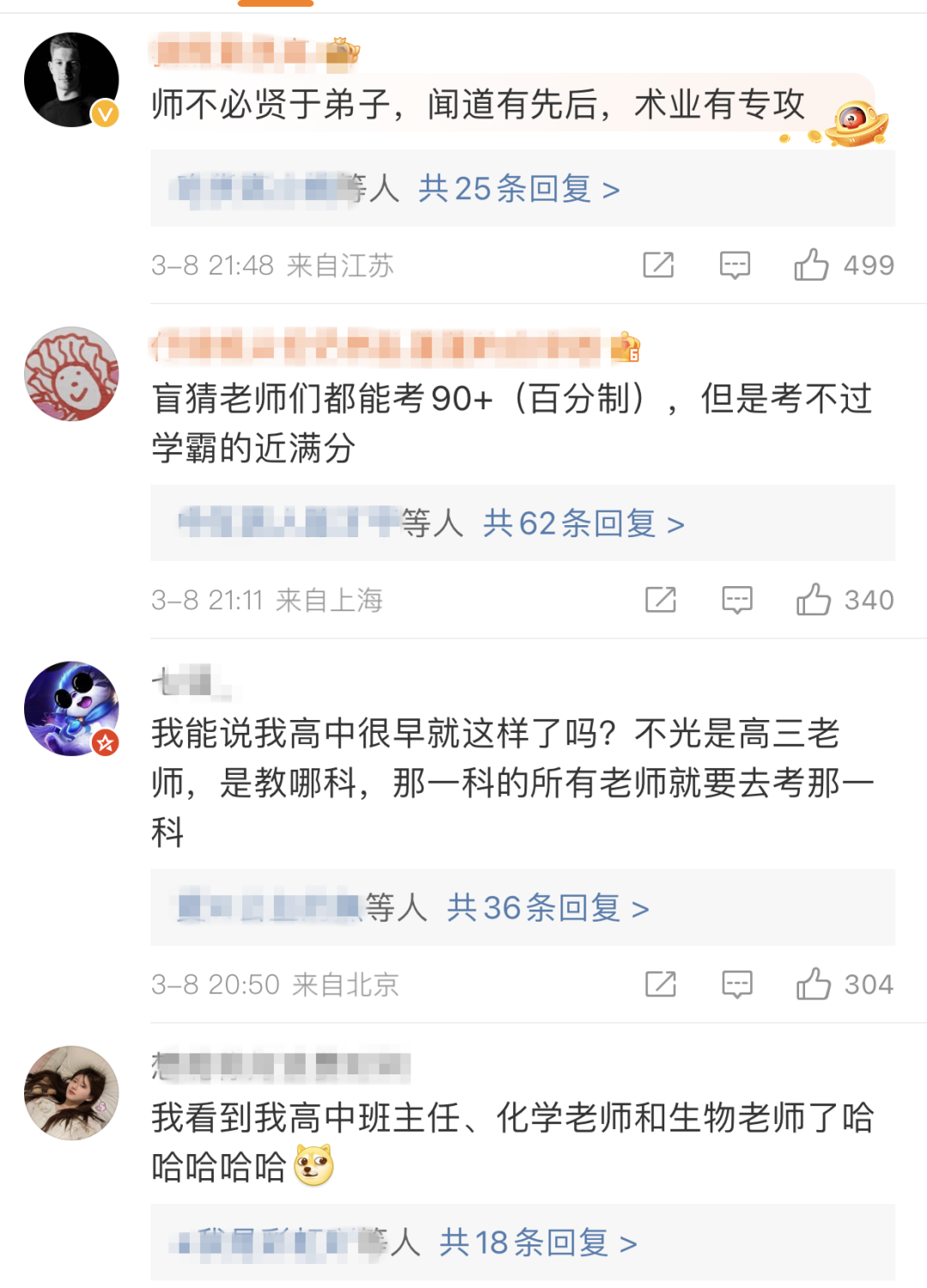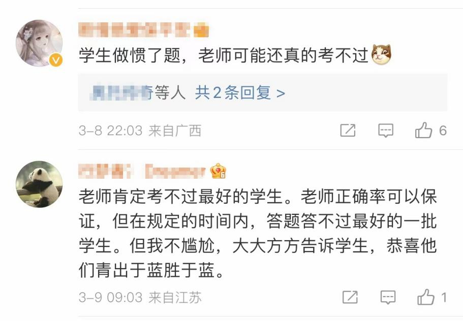 “老师能考过学生吗?”“师不必贤于弟子。”“盲猜老师们都能考90+(百分制),但是考不过学霸的近满分。”……相关话题引发网友热议。