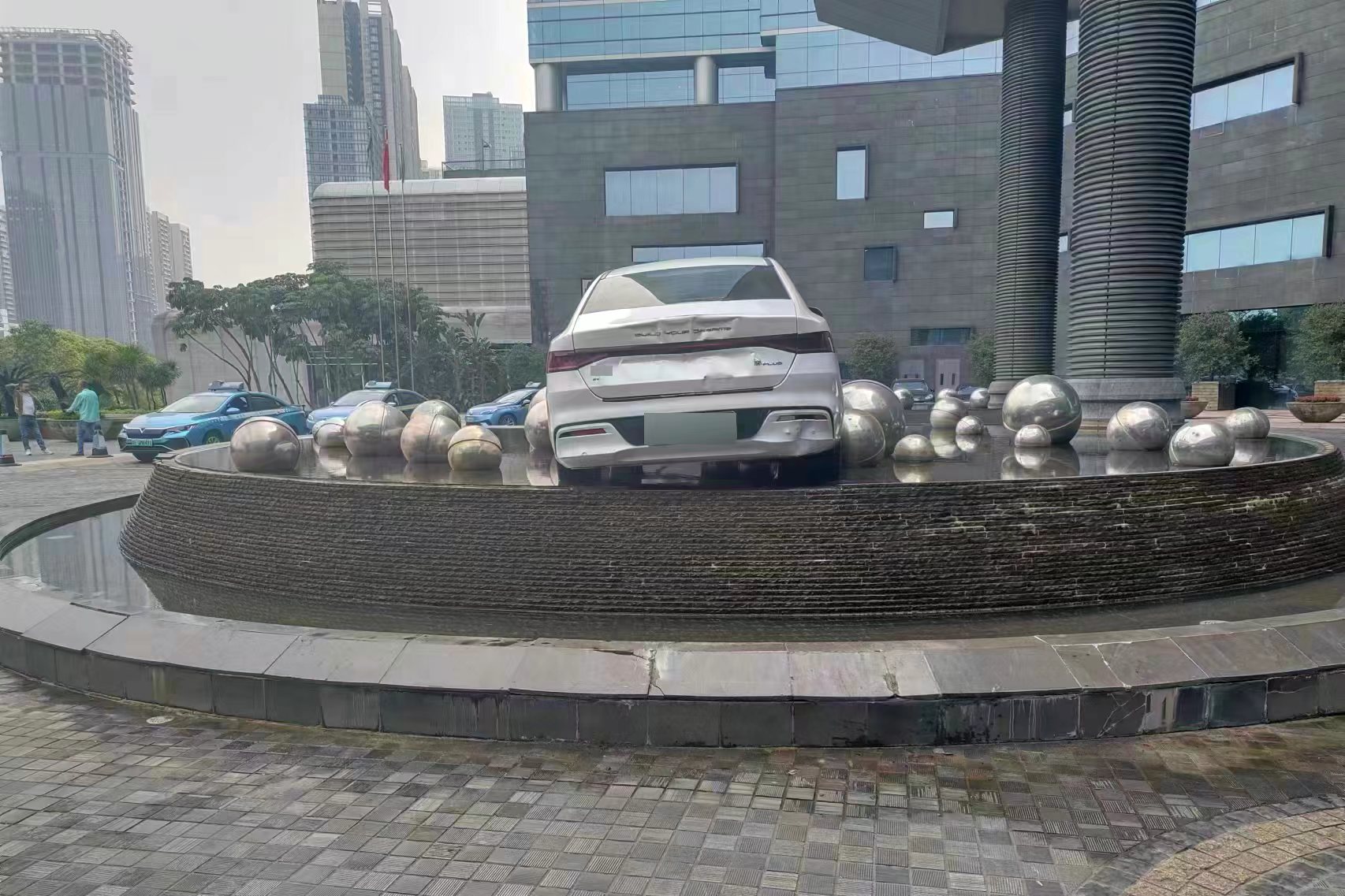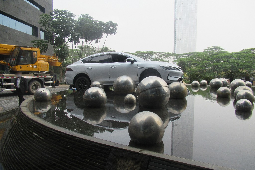 在顺德某酒店门口,一辆小汽车卡被卡在1米多高的水景台上,动弹不得;车头、车尾均有不同程度的损坏,险象环生。这惊险一幕是怎么造成的?