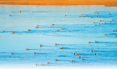 河南黄河湿地国家级自然保护区吸引了大批水鸟栖息。