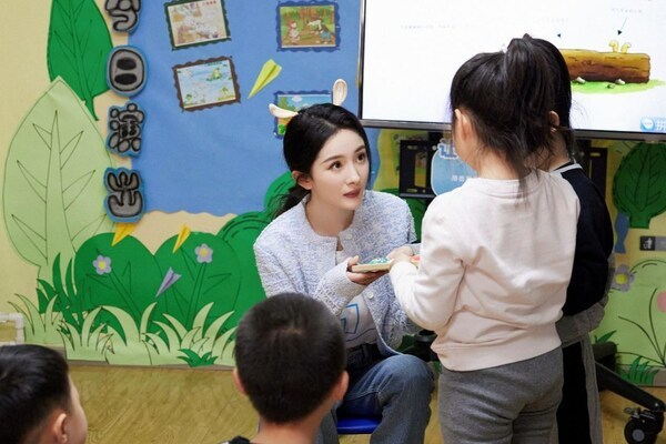 临近世界孤独症日,壹基金海洋天堂计划爱心大使、演员杨幂探访一所融合幼儿园,与幼儿园的孩子们做趣味游戏互动、为孩子们讲读绘本,向幼儿园老师了解园内孤独症儿童的情况和学前融合教育的情况,并与老师和孩子交换礼物。