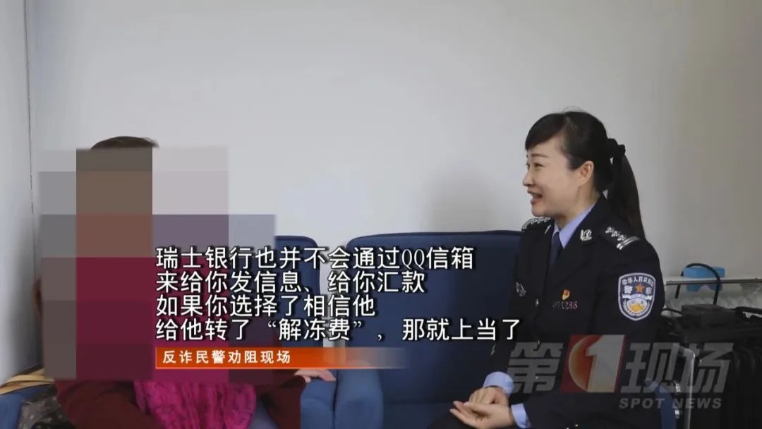 深圳市公安局大鹏分局 反诈中心民警 彭丽娜:对方诱导王女士将其在惠州市价值500多万元的别墅,以360万元低价挂牌出售,事主又通过QQ邮箱联系所谓的“瑞士银行” ,准备取出美金汇款。