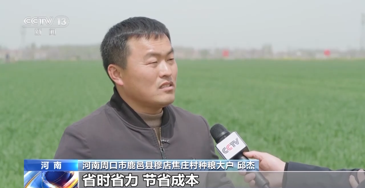 河南周口市鹿邑县穆店焦庄村种粮大户 邱杰:省时省力,节省成本,一亩地能节省4块钱左右,我种了将近2000多亩地,一季下来就可节省8000—10000块钱左右。