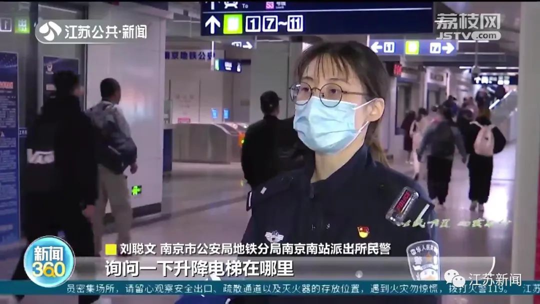 “大家如果携带了大件行李,可以选择乘坐升降电梯出行,不要倚靠在电扶梯的墙壁上,这样避免因摩擦力而导致自己摔倒。如果大家推的是婴儿车,更建议大家寻找车站工作人员,或者地铁的民警、辅警,询问升降电梯在哪里。”南京市公安局地铁分局南京南站派出所民警刘聪文提醒。