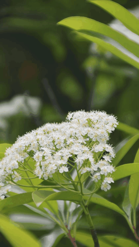 石楠还有一段历史故事,相传唐玄宗在杨贵妃去世后,有一天在寺庙里看到了盛开的石楠花,洁白秀丽又端庄整齐,唐玄宗就想起杨贵妃来,因为贵妃生前梳洗的地方叫端正楼,于是唐玄宗便把石楠称之为“端正树”。其实它的花语是持久,但石楠花期其实很短,一般只有十天左右,忍一忍就过去了。