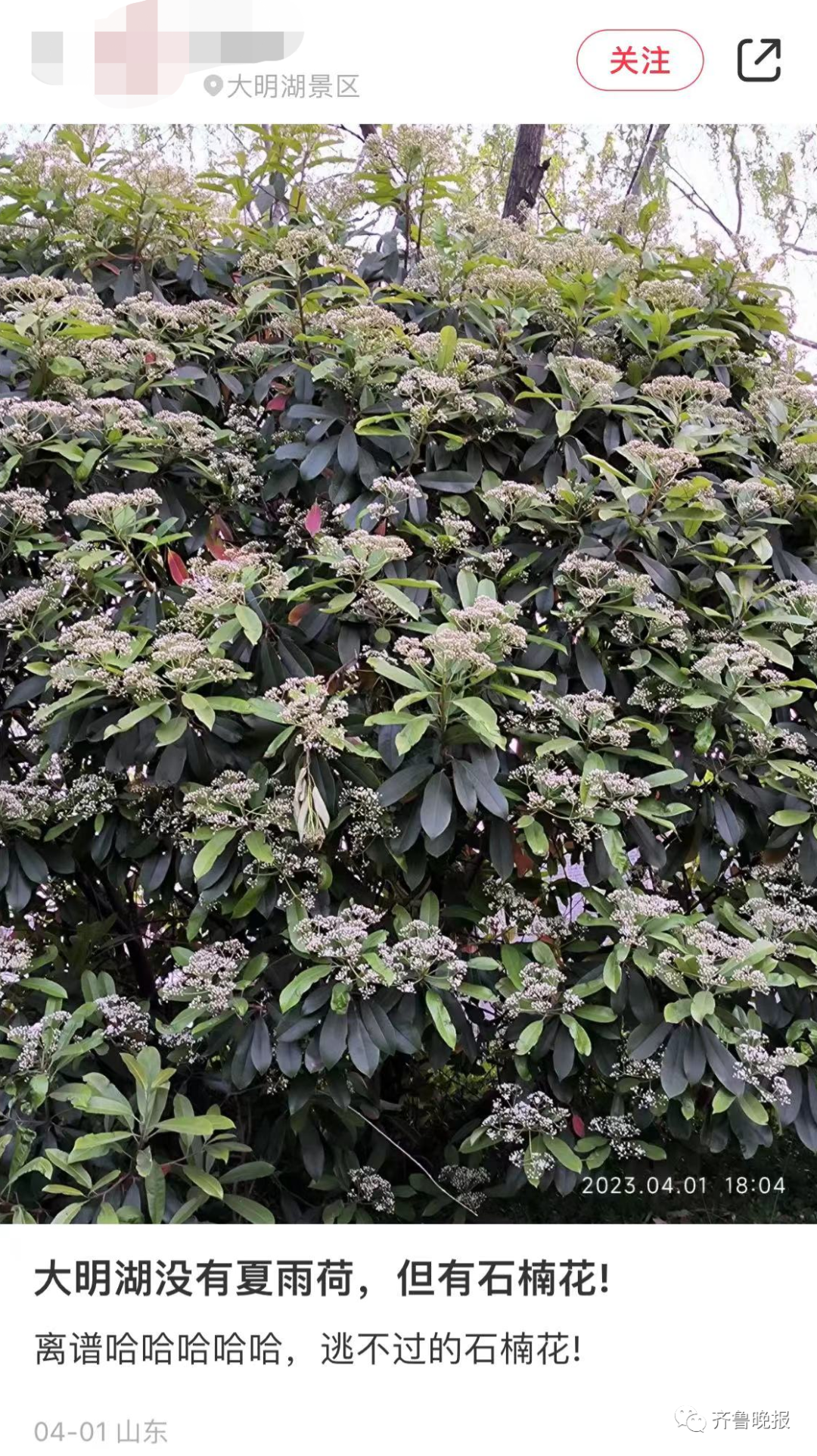 有网友因为好奇,去闻了一下济南大明湖的石楠花……