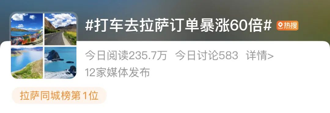 近日,#打车去拉萨订单暴涨60倍#、#近期3万人想打车去拉萨# 等话题冲上热搜。