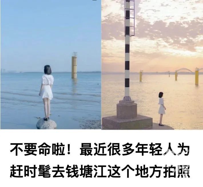 △两年前,有年轻人为赶时髦,去钱塘江拍照。这对不熟悉钱塘江潮水的人来说,是一件非常危险的事。