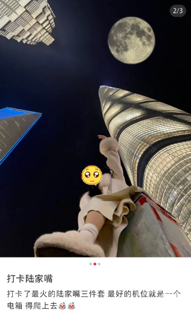 今年1月,据上海媒体报道,有网友站到上海中信大厦对面的一个电表箱上自拍,称在该电表箱上可以同时拍到自己和环球金融中心、金茂大厦、上海中心大厦三座高层建筑。