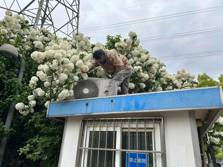 △负责拆卸的工作人员在检查岗亭结构和线路。