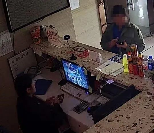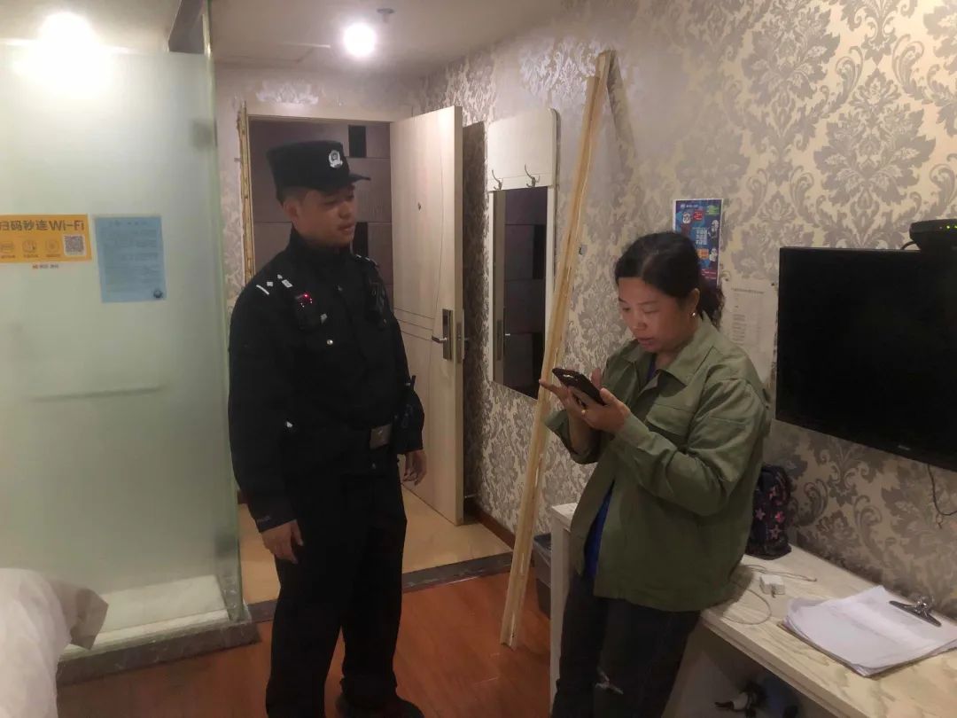 “很警觉,你这个举动很机智!”同时,民警笑着夸赞宾馆工作人员吴菊英的细致和机警。