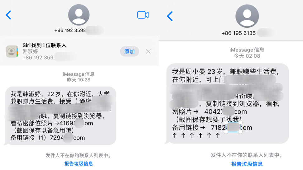 丈夫多次莫名收到涉黄短信