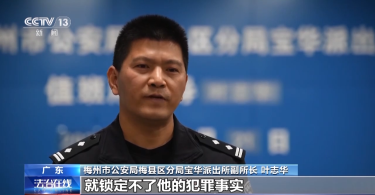 广东省梅州市公安局梅县区分局宝华派出所副所长 叶志华:对于我们的审查他是有自己的一套,在我们讯问的时候他也比较淡定,没有什么铁的证据的话,就锁定不了他的犯罪事实。