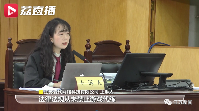 江苏爱代网络科技有限公司上诉人表示:“游戏‘代练’长期存在,是市场的客观需求,法律法规从未禁止游戏‘代练’。一审所依据的《中华人民共和国未成年人保护法》《中华人民共和国网络安全法》并无网络实名制的具体规定,且即使有相应的规定,该规定也只是针对相应的游戏企业。”