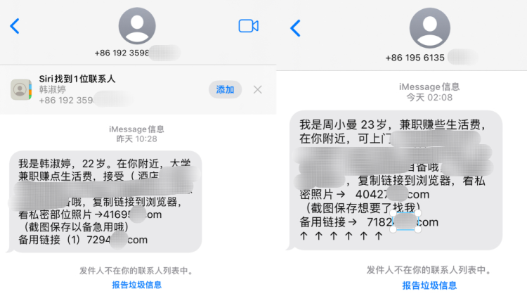 请广大网民洁身自爱,这其中潜藏着巨大的法律风险和现实风险,你很有可能遭遇后续的敲诈勒索,接到此类短信请一定要予以删除拉黑,发生侵害后及时向公安机关报案处理!