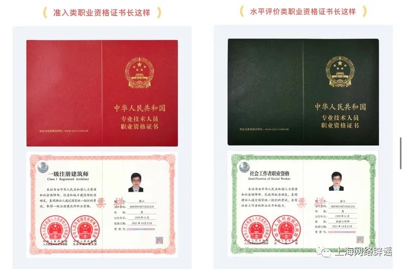 换句话说,“准入类职业资格”是某项职业(工种)的准入门槛,没有相关证书就无法从事该项职业(工种);而“水平评价类职业资格”体现的是某项职业(工种)从业者的技术技能,并非准入门槛 。