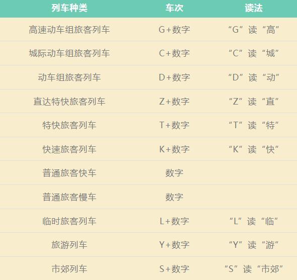 列车车次代表什么意思?