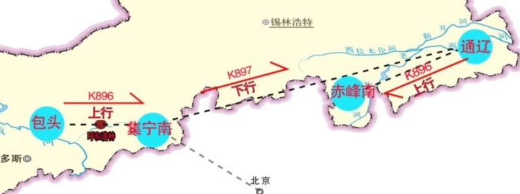 以包头到赤峰南K896/897/896次列车为例