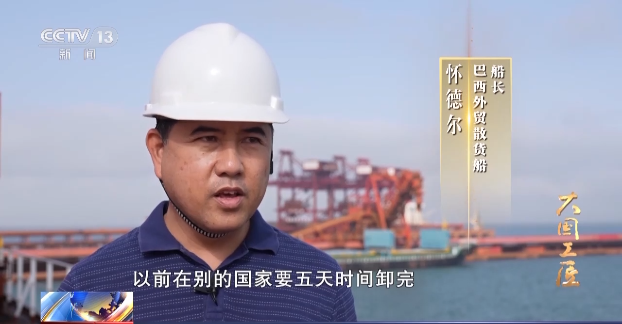 巴西外贸散货船船长 怀德尔:中国的卸船速度非常快,以前在别的国家要五天时间卸完,在中国只需要两天时间。我们很惊讶中国速度,中国速度领跑世界港口。
