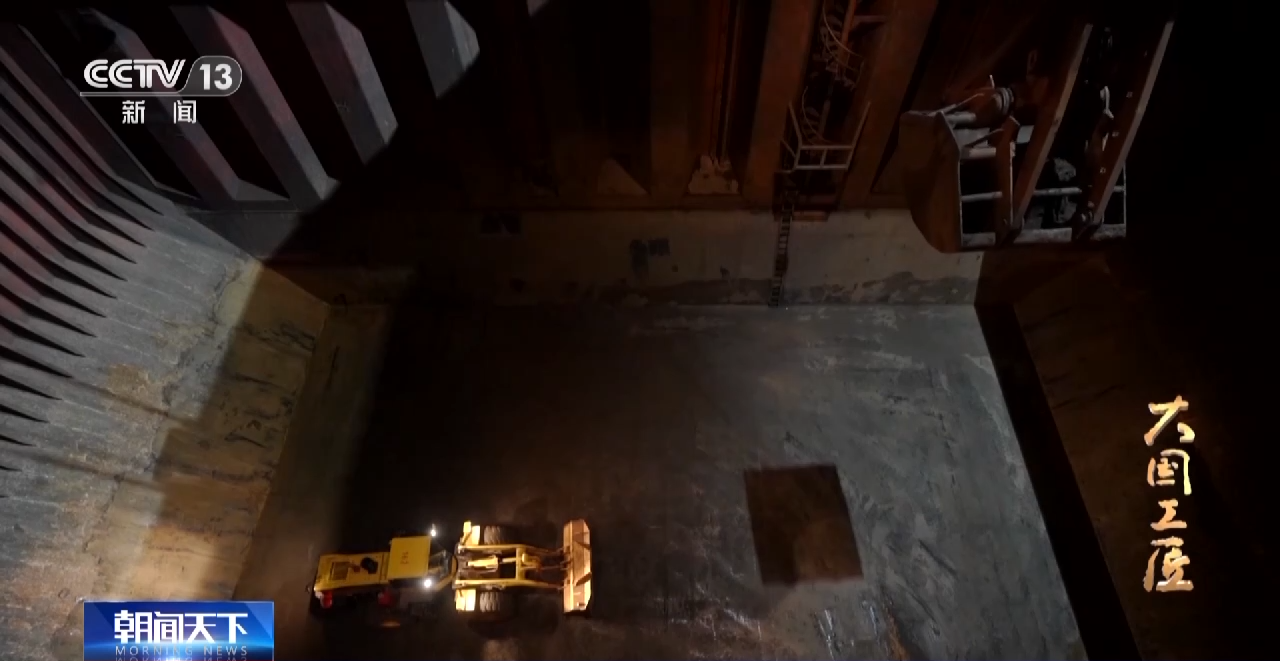 这台自重30多吨的大型装载机,轮胎就有一人多高。在清舱作业时,郭凯的视线被铲斗挡住了,铲斗和舱壁的距离,只能靠手感和经验来判断。而郭凯把装载机铲斗和舱壁的距离精确地控制在了1毫米。如果距离大于1毫米,壁上的矿石就难以刮干净,小于1毫米,就会刮到舱壁。刹车、油门、落大臂、起翻斗,郭凯一连贯动作行云流水,人车合一。