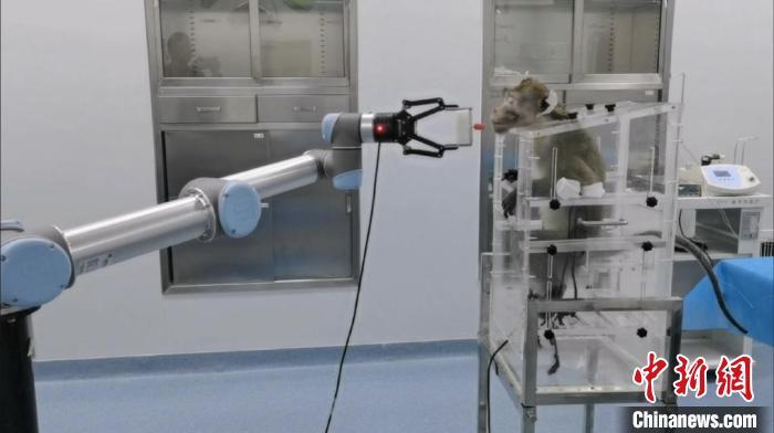 中新网天津5月5日电(孙玲玲 乔仁铭)记者5日从南开大学获悉,4日,由南开大学段峰教授团队牵头的全球首例非人灵长类动物介入式脑机接口试验在北京获得成功,该试验在猴脑内实现了介入式脑机接口脑控机械臂,是在前期介入式脑机接口动物(羊)试验基础上取得的进一步成果,实现了介入式脑电信号从被动采集到主动控制的技术飞跃,突破了血管内脑电信号采集、介入式脑电信号识别等核心技术。