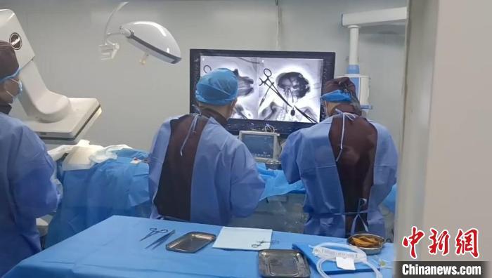 此次试验的介入手术由解放军总医院第一医学中心神经外科吴东东医师团队操作完成。介入式脑电传感器通过颈静脉,进入矢状窦,到达猴运动皮层脑区。在术后成功采集并识别到非人灵长类动物介入式脑电信号,实现了动物对机械臂的主动控制。