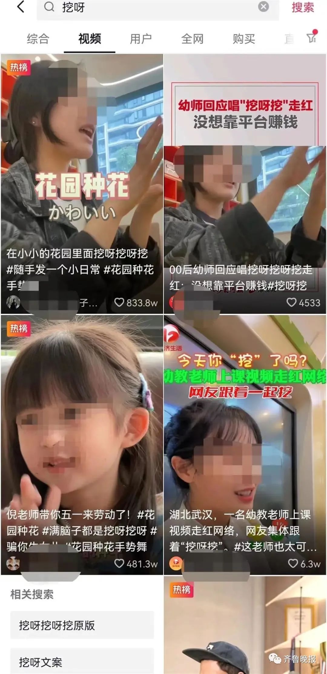林女士的视频发布之后,4月24日至4月28日,“你是可可呀”“毛葱小姐(桃子老师)”“好孟”“音乐老师花开富贵”等账号先后发布了表演“挖呀挖”手指歌曲的短视频,这几名博主都是幼教老师。