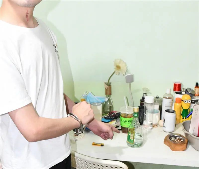 由于该栋楼层的外立面没有设置监控,民警无法直接判断抛掷尿液瓶的区域。于是,民警只能安排人员从该楼栋3层以上的房间进行逐一排查。排查到8楼时,民警发现一住户的房间内有类似瓶子,地上还有未装满尿液的塑料瓶、酒瓶。