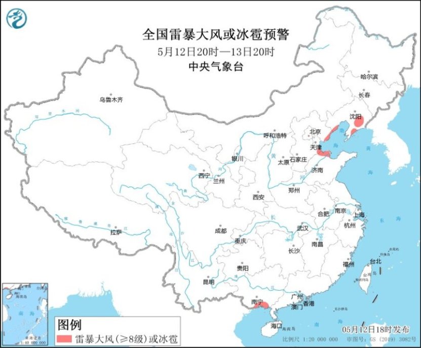 图1 全国雷暴大风或冰雹预警(5月12日20时-13日20时)
