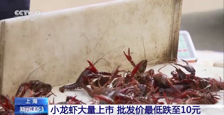 今年各地小龙虾上市量大,身价持续下降。在上海小龙虾批发最集中的嘉燕水产市场,近期每天的批发量都超过15万斤。最便宜的小虾批发价每斤十元。