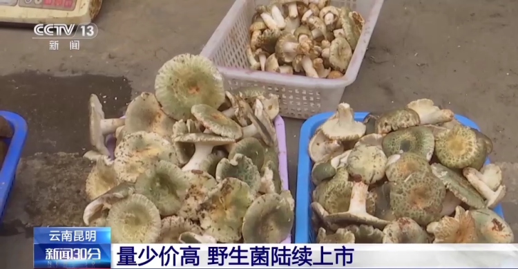 在昆明,野生菌市场开始交易野生菌。目前,已有青头菌和鸡油菌上市。但由于上市量太少,一大早就被抢购一空。