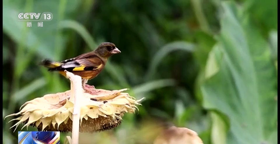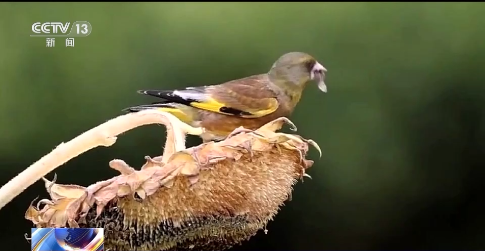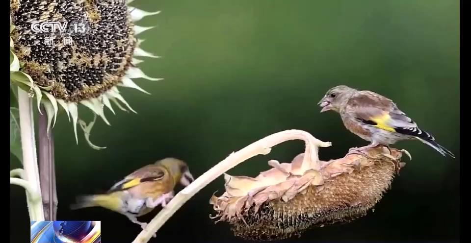记者在滨江湿地公园看到,金翅雀争抢着站在葵花盘上,快速啄食着葵花籽。只见它们轻松地挖出瓜子,娴熟地嗑出瓜子仁进食,全套动作一气呵成,非常可爱。