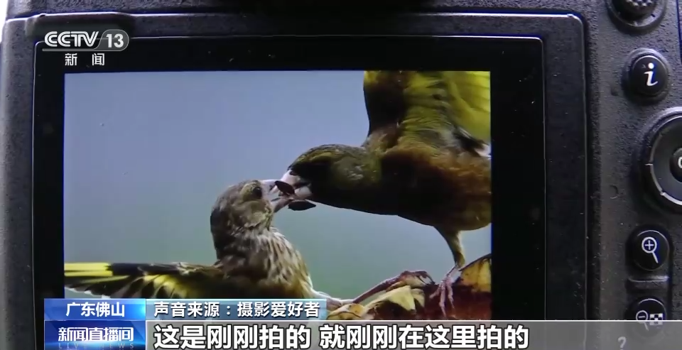 来自广佛两地的摄影爱好者也纷纷跟着金翅雀过来,架起长枪短炮拍个不停,他们还抓拍到了金翅雀展翅飞舞以及鸟妈妈喂食小鸟的温馨画面。