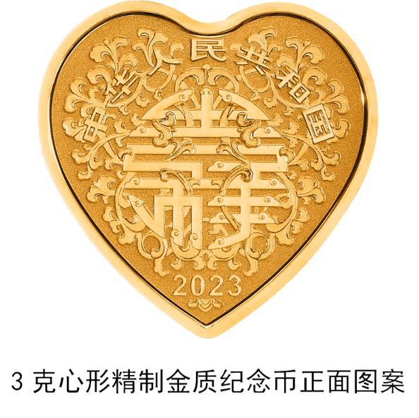 3克心形金质纪念币为精制币,含纯金3克,外接正方形边长18毫米,面额50元,成色99.9%,最大发行量20000枚。