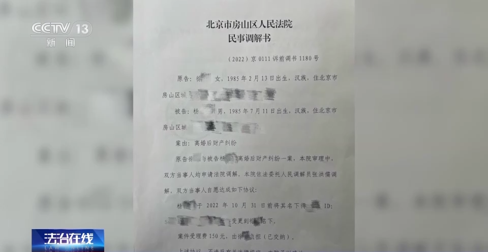 北京市房山区人民法院立案庭法官 杜巧静:这是一个离婚后财产纠纷,徐女士和杨先生之前是离婚了,离婚了之后,他们一个在社交平台上的账号没有进行分割,所以他们此次来法院进行了一个离婚后财产纠纷的诉讼,双方要求分割一个社交平台的账号。