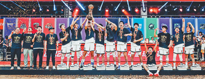5月14日,北京首钢篮球中心,回浦中学队庆祝夺冠。