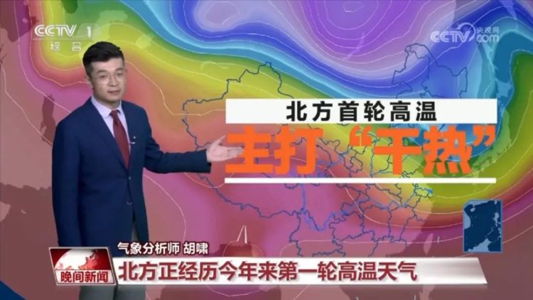 气象分析师胡啸表示:目前,我们国家北方正在经历今年第一轮大范围的高温天气过程。这一轮高温天气过程最大的特点,就是干热。伴随着一个高压挤区的逐渐东移,高温逐渐显现,在挤区之内是下沉增温,晴朗少云的天气。