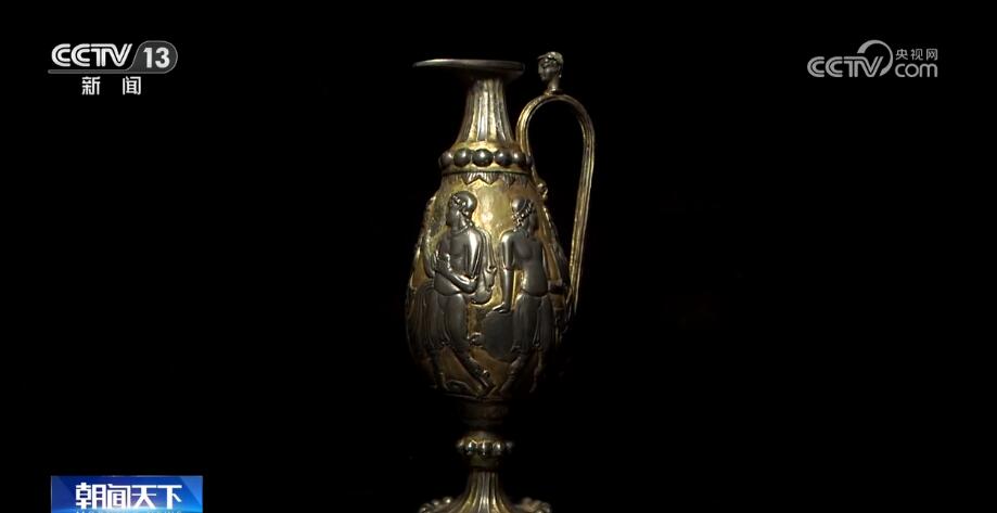 固原博物馆副馆长 张强: 壶身所饰内容是希腊神话帕里斯裁判和特洛伊战争故事。鎏金银壶是波斯王朝贵族所使用的酒具,整个壶身融合了波斯萨珊风格、希腊风格和巴克特里亚当地因素,体现出伴随丝路的开通,东西方贸易的扩大以及金银器贸易的广泛开展。