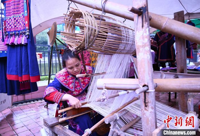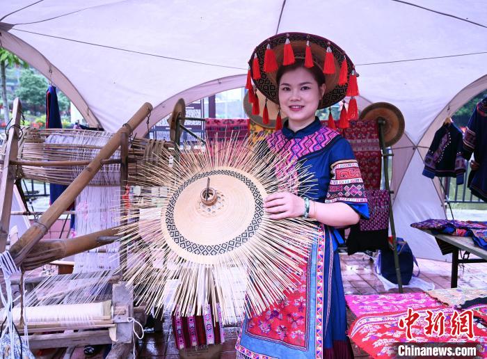 图为毛南族花竹帽编织技艺展示。 杨志雄 摄