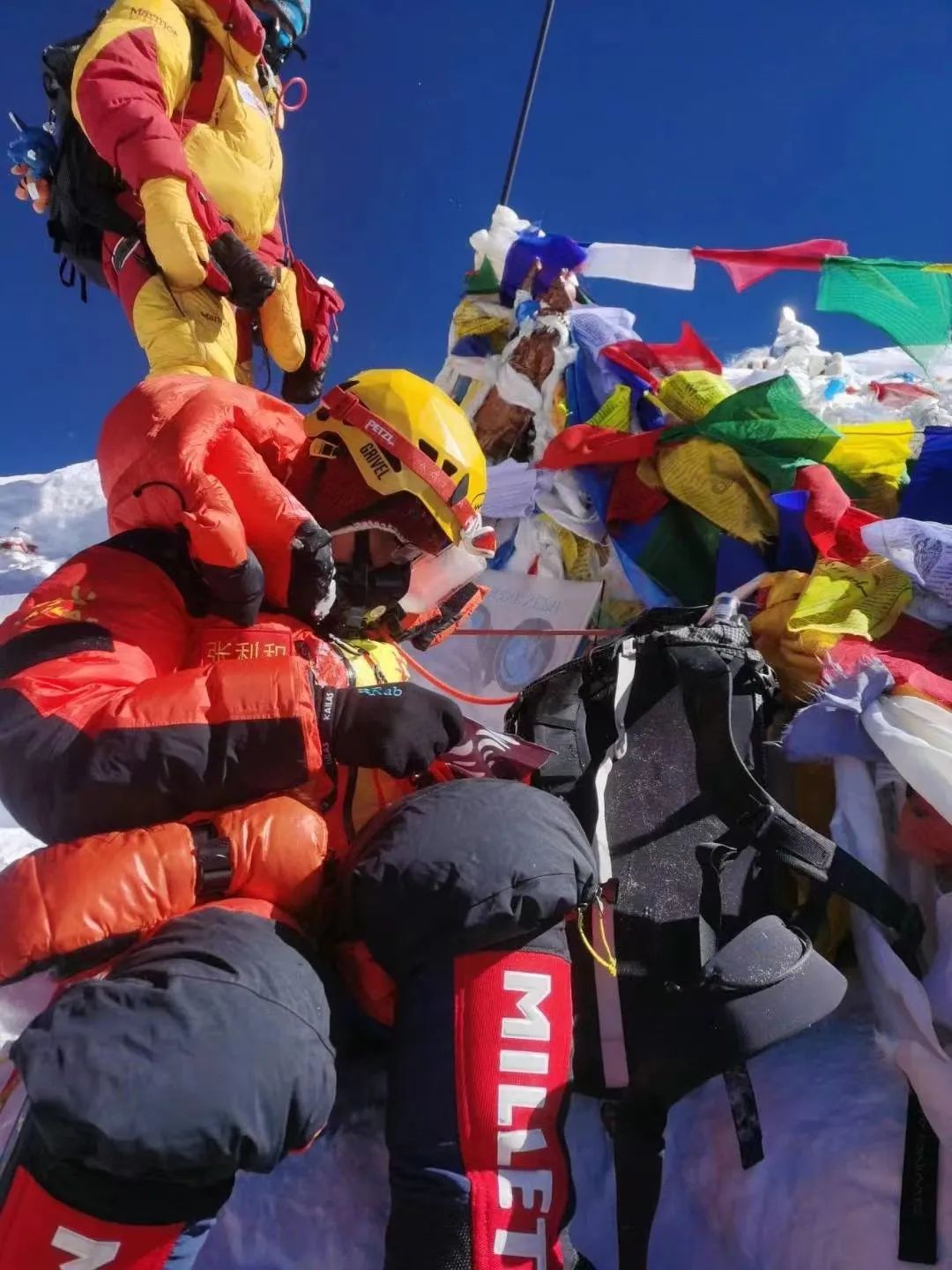“5月14日零时,我们正式出发,用了4天时间,于5月18日清晨成功登上珠峰。站在峰顶时,最大的感觉就是太高了,高耸入云,一览众山小。云就在我的脚下,峰顶的风很大,气温也很低,大概在零下40度左右,那一刻,真的觉得大自然是如此浩瀚,让人震撼”。张利和由衷感慨道。